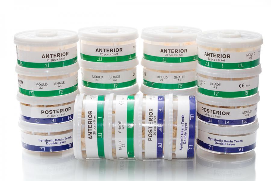 Полный набор искусственных синтетических полимерных зубов в удобных секционных бобинах. Цвета А2 и А3.