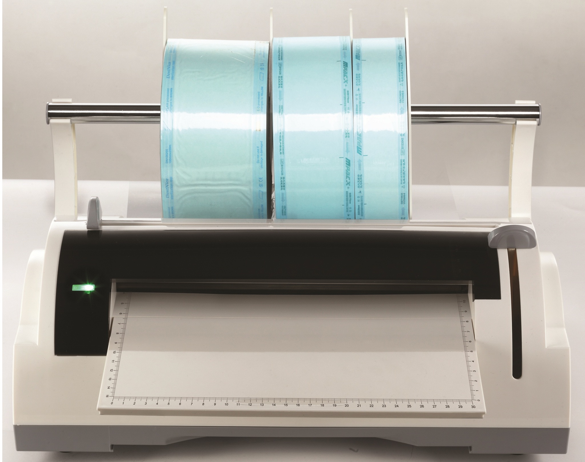 • Ламинатор КНР - предназначен для упаковки инструментов перед автоклавированием. Включает в себя держатель рулонов, нож, световой и звуковые индикаторы окончания процесса. Длина шва 300 мм, ширина шва 12 мм, максимальный диаметр рулона 200 мм.