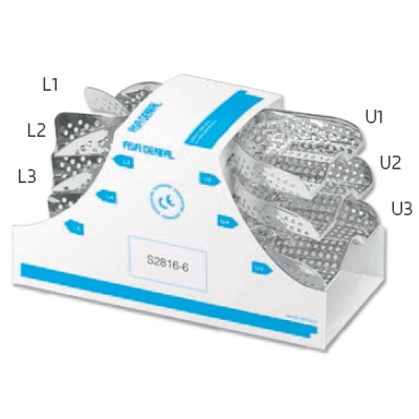 • Ложка слепочная, набор 6 штук, с перфораций без бортика, детская, из аллюминия, Asa Dental (Италия)