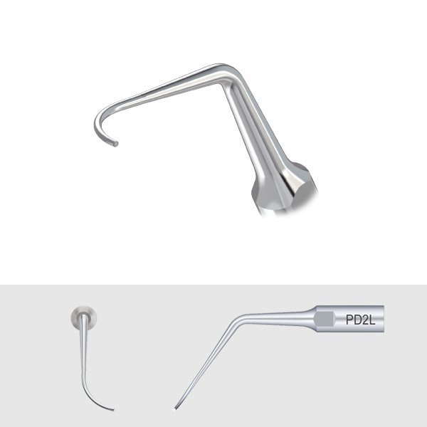 • Насадка пародонтологическая PD2L, изогнутая под углом в левую сторону, используется для очистки области фуркации от зубных отложений.